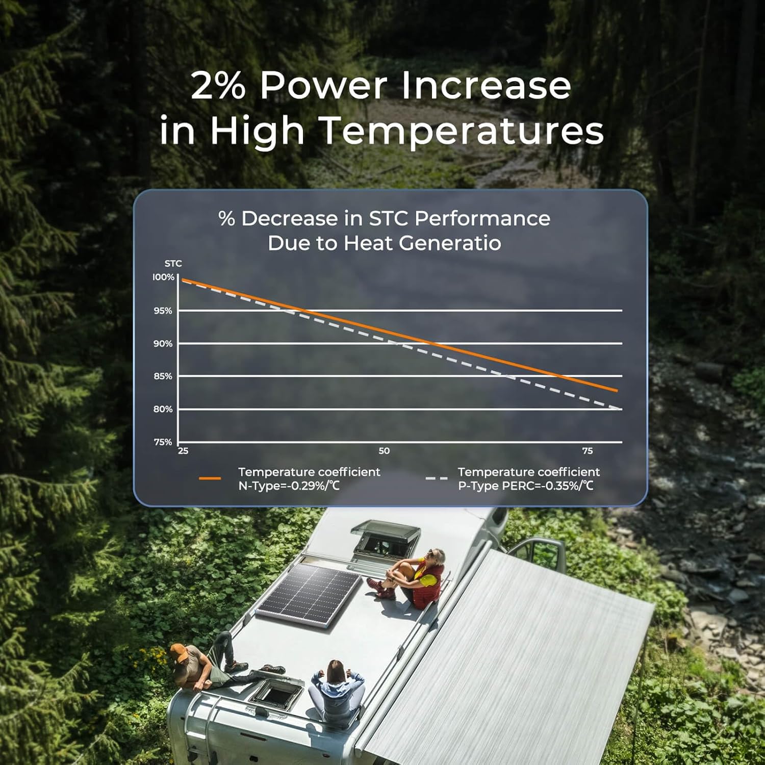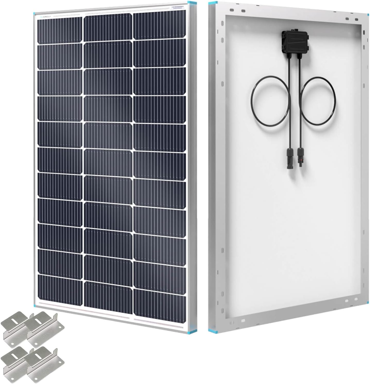 Renogy Solar Panel 100 Watt 12 Volt with Mounting Z Brackets, 16BB 100W N-type Solar Panels 25% High-Efficiency PV Module Power Charger for RV Marine Rooftop Farm Battery